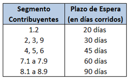 En esos casos, la intimación deberá respetar un plazo de espera uniforme de 20 días corridos contados desde la implementación de las adecuaciones sistémicas, salvo para los contribuyentes del Segmento 1.1