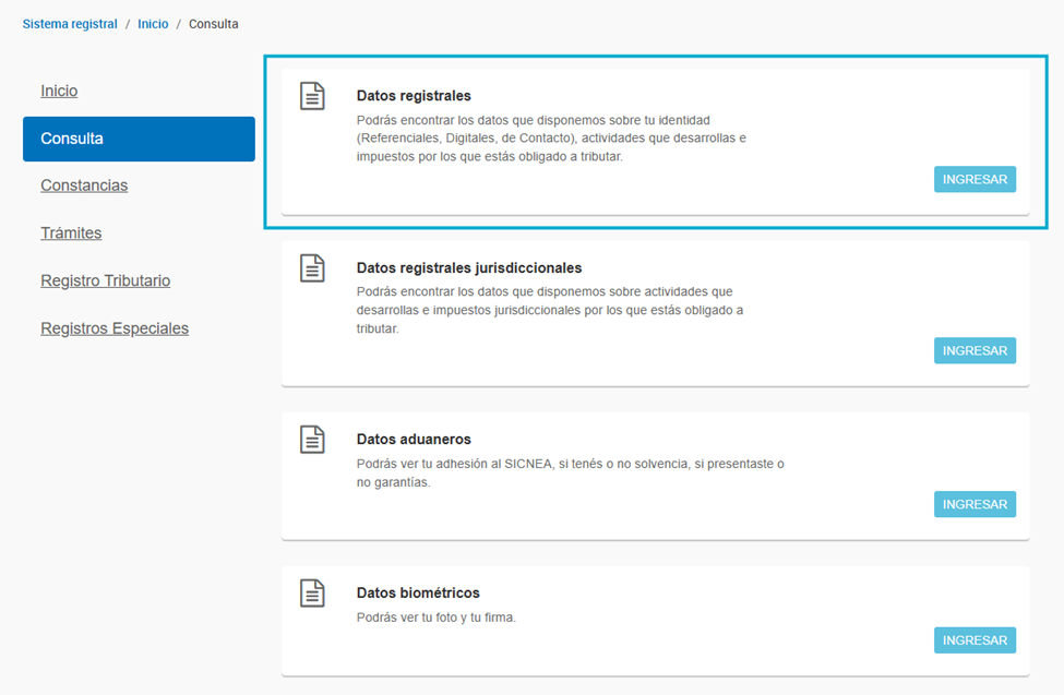 Ingresamos a “Datos registrales”