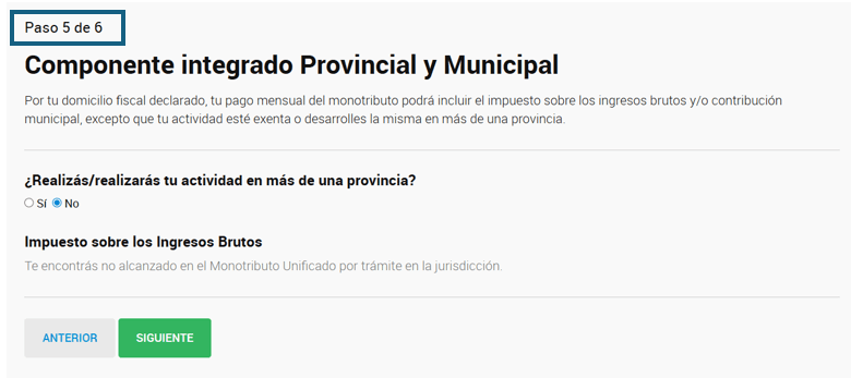 En el caso de nuevas altas la adhesión al monotributo unificado se realizará al momento del alta en régimen simplificado, en el paso número 5, en el cual el contribuyente deberá informar su situación frente a Ingresos Brutos.